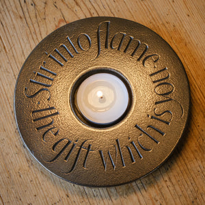 From a stone carving by Tom Little, this piece measures 13.5cm in diameter, comes in a Wild Goose Studio presentation gift box and includes a tea light.